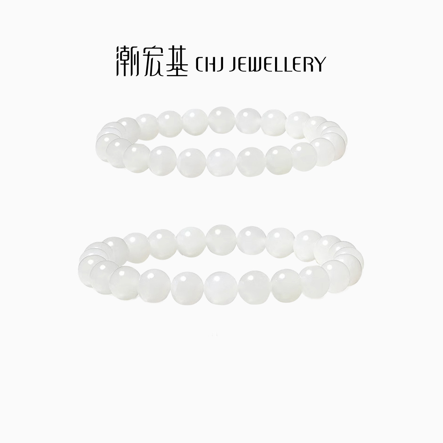 天猫潮宏基倾玉和田玉手链玉石白玉手串手饰转运串珠圆珠生日礼物