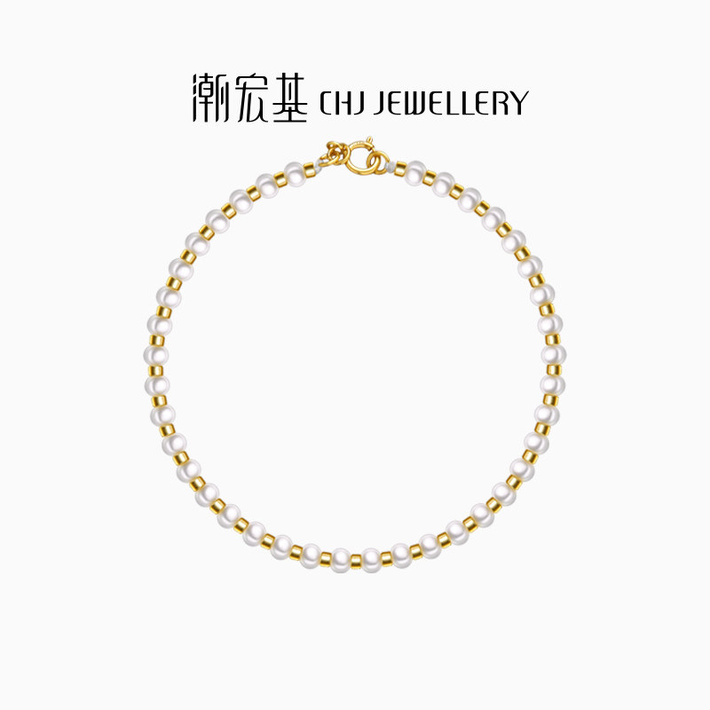 天猫潮宏基18K金珍珠手链彩金手饰气质优雅浪漫小仙女送女友生日