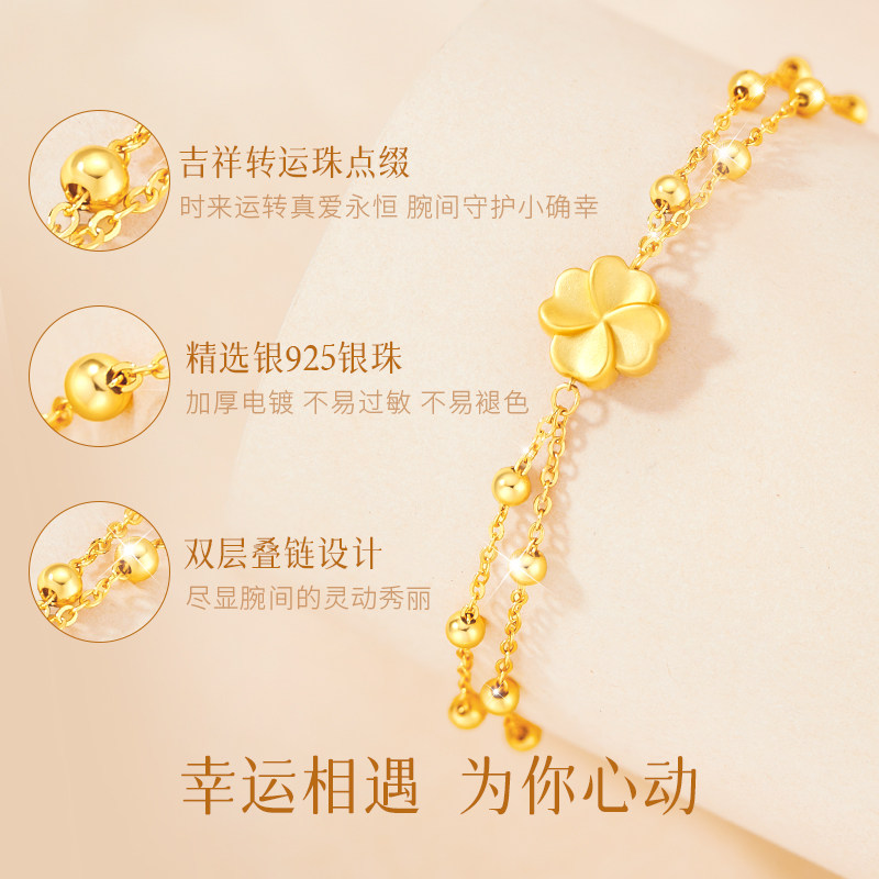 天猫中国黄金珍尚银纯银四叶草手链女生款手饰新年生日礼物送女友S925