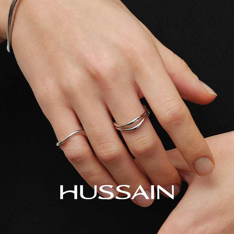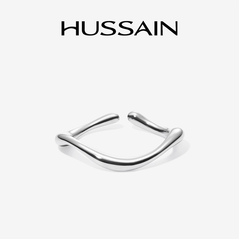 天猫赫生HUSSAIN曲漾纯银戒指女轻奢高级感小众设计2026新款叠戴手饰