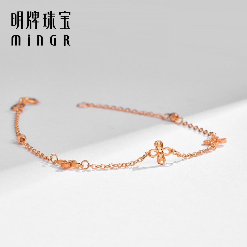 天猫明牌珠宝18K金花季手链 玫瑰金素链彩金K黄K红四叶女手饰CSK0097