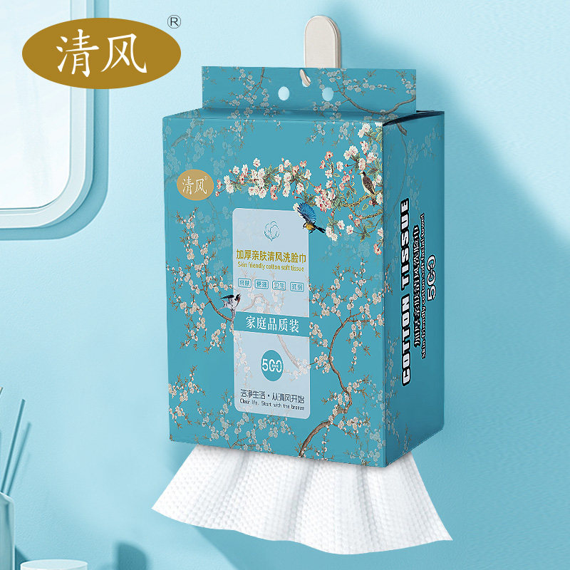 清风壁挂式家用一次性洗脸巾加大加厚干湿两用擦脸巾洁面巾500克