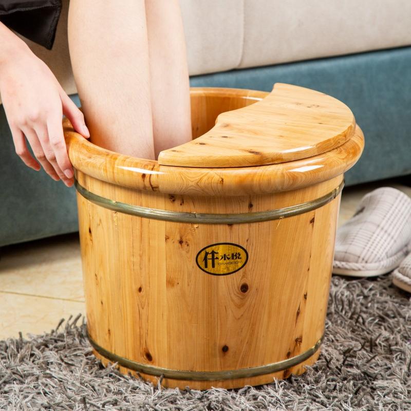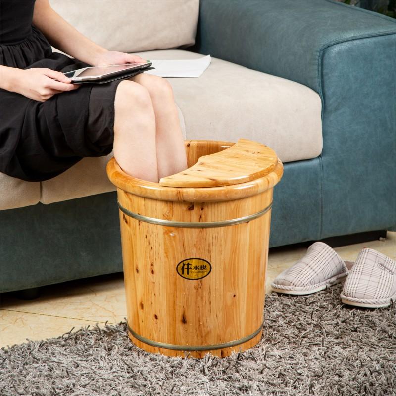 香柏木足浴桶家用按摩泡脚木桶加盖洗脚盆足疗木桶浴足木盆洗脚桶