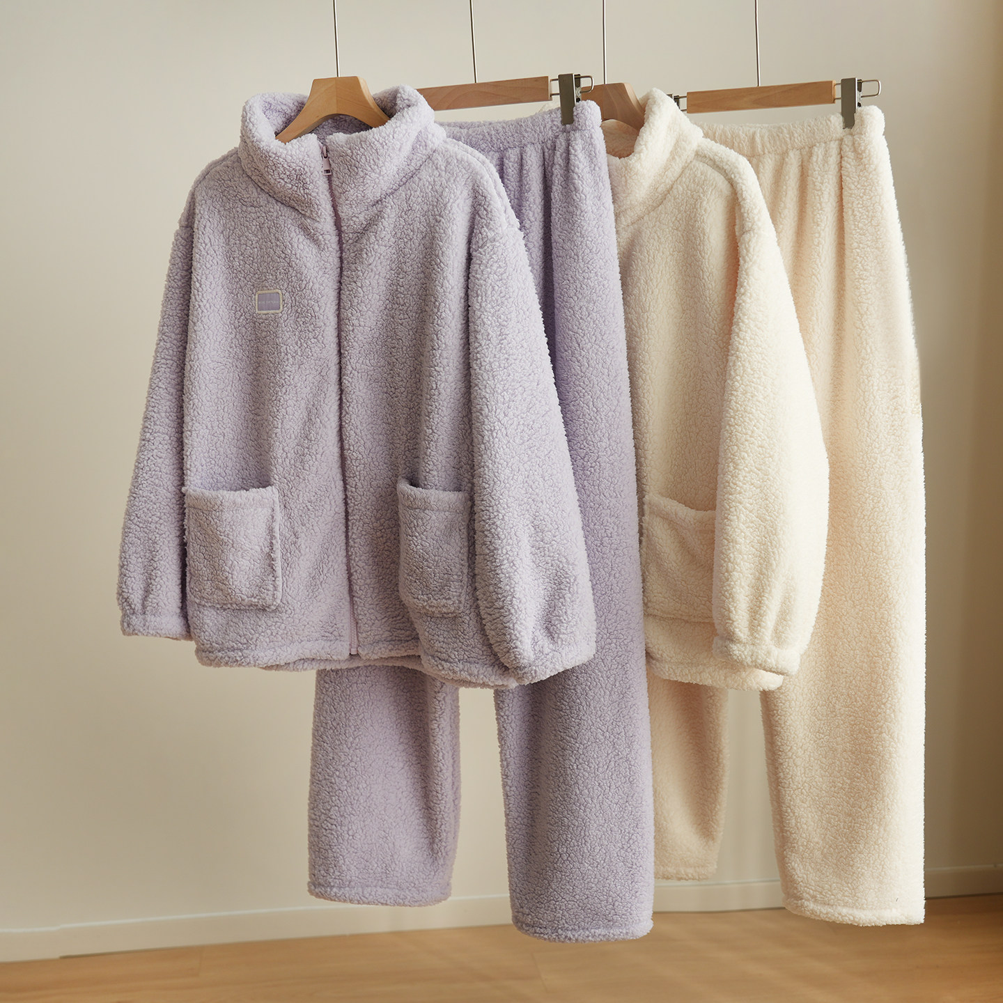 【双层加厚】睡衣秋冬季男款加绒羊羔拉链冬天珊瑚绒情侣家居服女