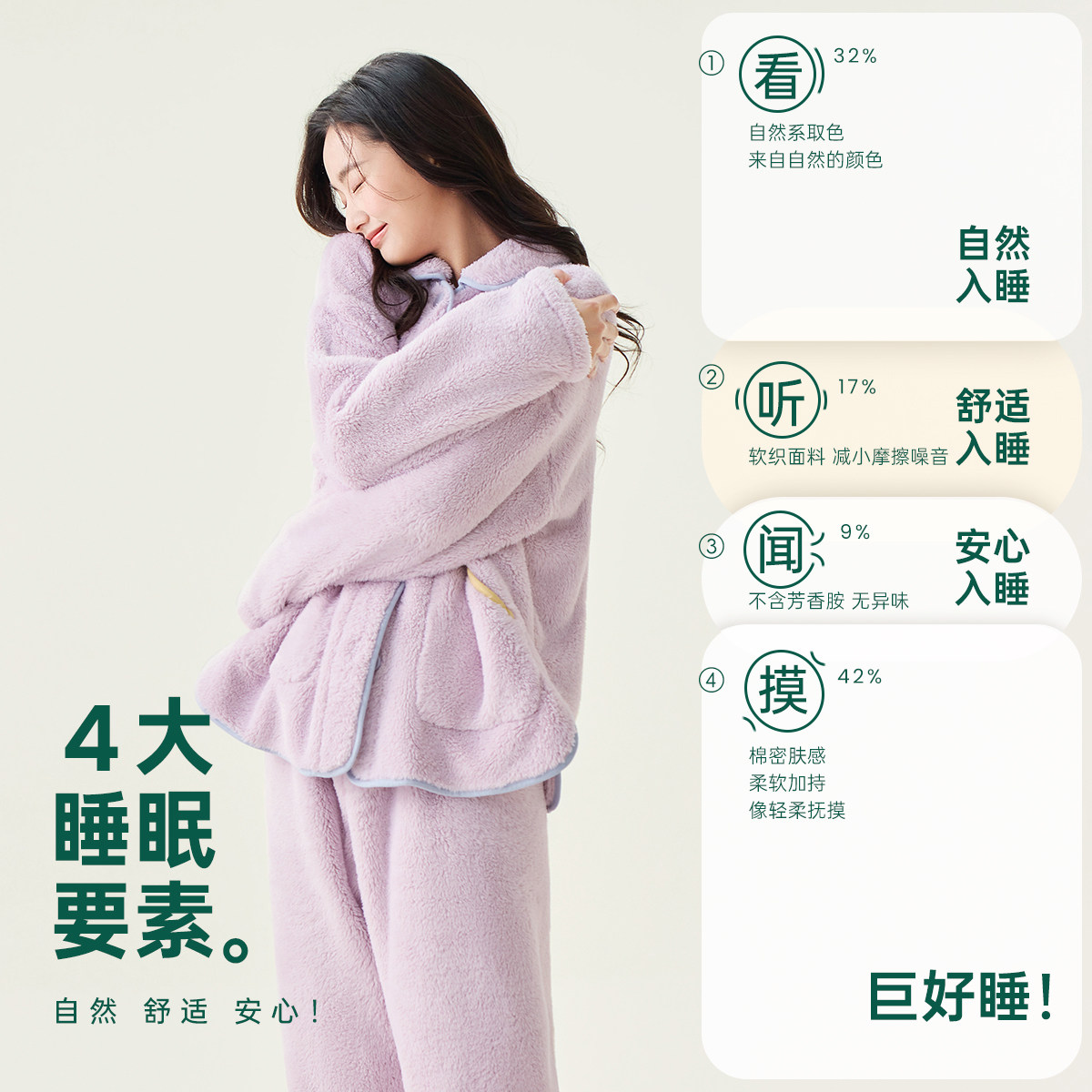 男士睡衣秋季纯棉磨毛绒布情侣女士秋冬简约高级感长袖家居服套装