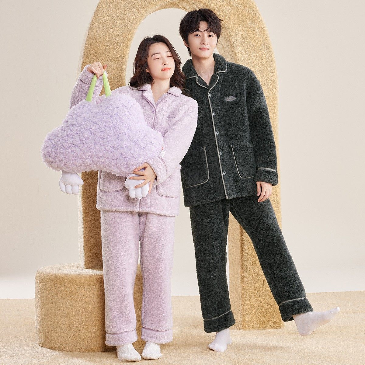 思莉太太情侣睡衣冬季女珊瑚绒加厚加绒秋冬天法兰绒男士韩系套装