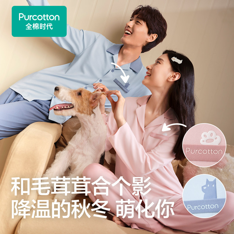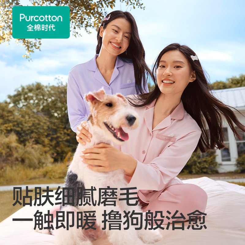 天猫全棉时代睡衣家居服男女士情侣套装抗静电磨毛保暖绒绒家居服