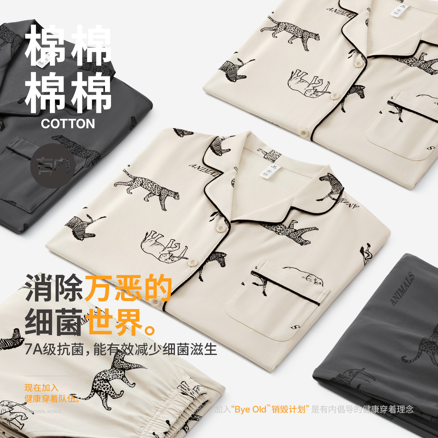 天猫有内情侣纯棉睡衣女款2025新长袖防螨抗菌A类时尚家居服秋冬套装