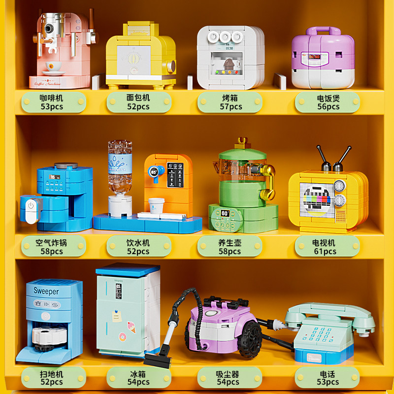 淘宝方橙积木儿童益智拼装玩具迷你家电冰箱电视模型女孩礼物男孩拼图