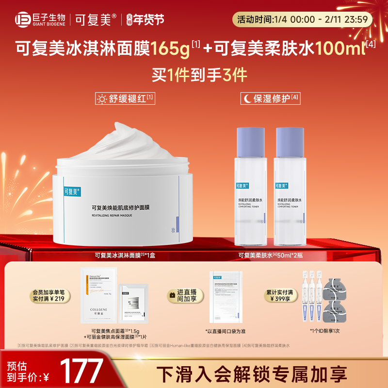 天猫可复美冰淇淋涂抹式面膜舒缓保湿修护屏障165g巨子生物柔肤水