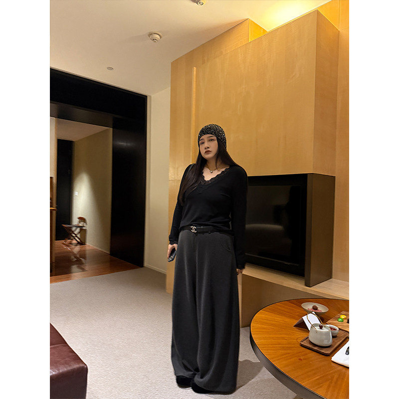 淘DM100大码百分百女装微胖mm冬季舒适保暖羊绒醋酸宽松阔腿休闲裤