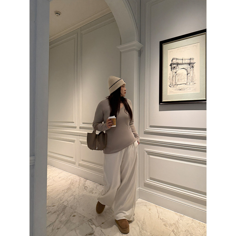 加绒裤子女3R3正品高腰阔腿裤2025秋冬新款宽松松弛感休闲弯刀裤