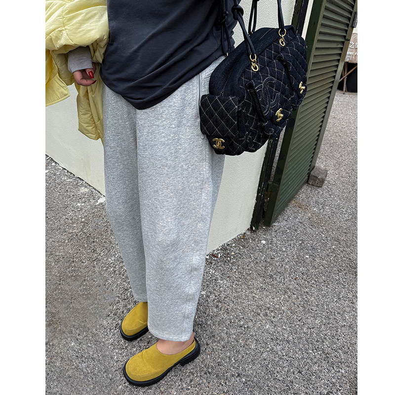 胖mm秋冬抓绒显瘦卫裤木子理想大码女装松紧腰百搭休闲裤子200斤