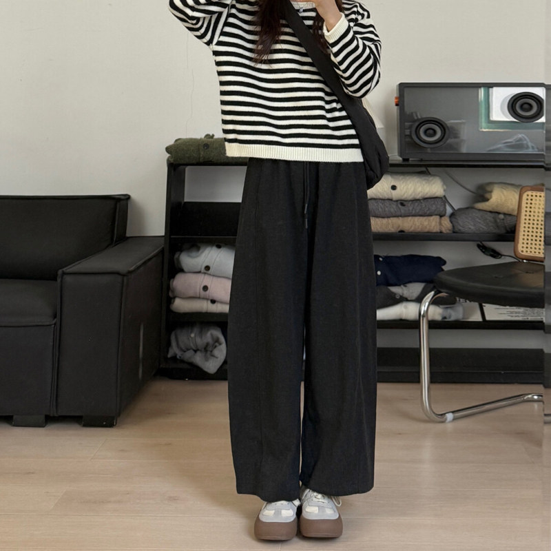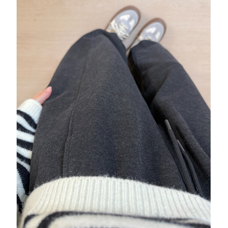 胖mm冬季简约直筒休闲裤木子理想大码女装松紧腰百搭磨毛厚长裤子