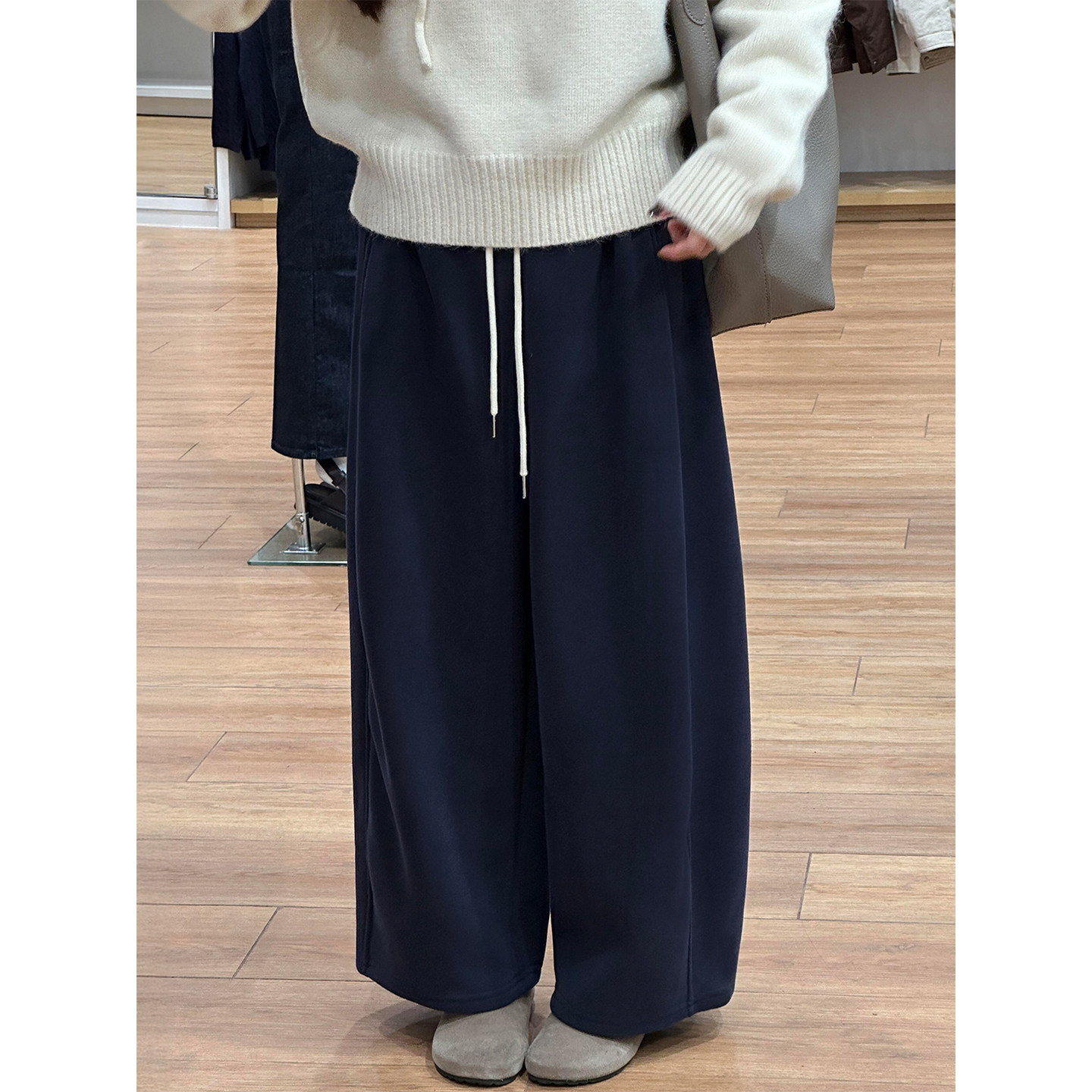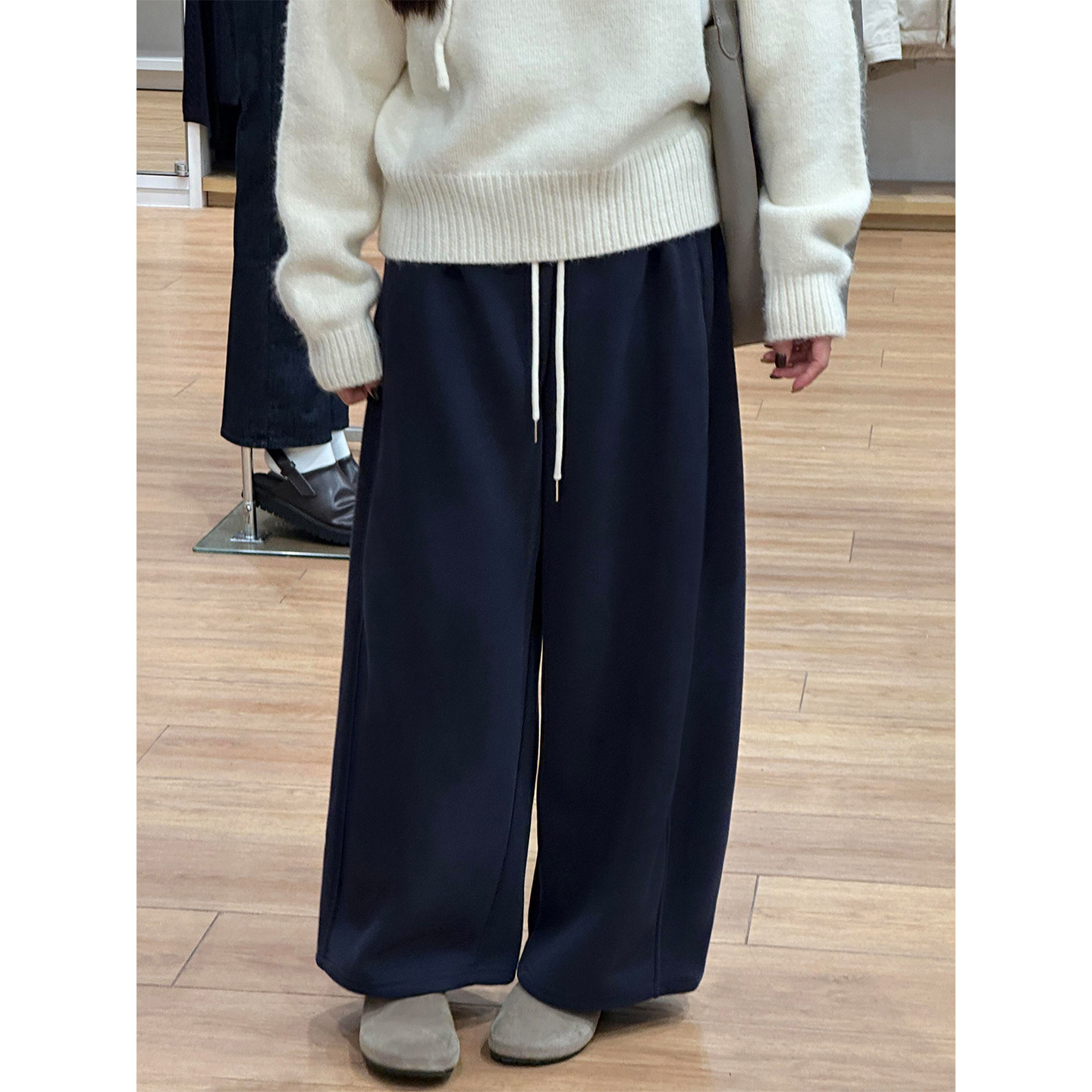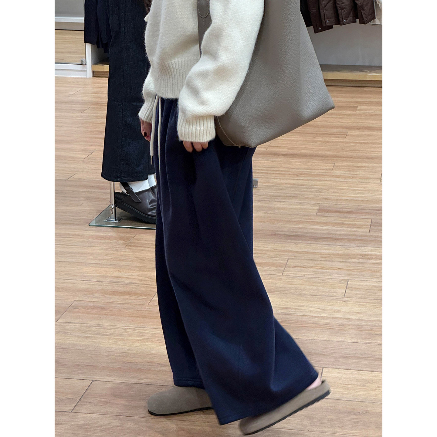 淘宝藏青色加绒加厚阔腿卫裤女冬季新款胖妹妹mm宽松显瘦梧桐休闲裤子