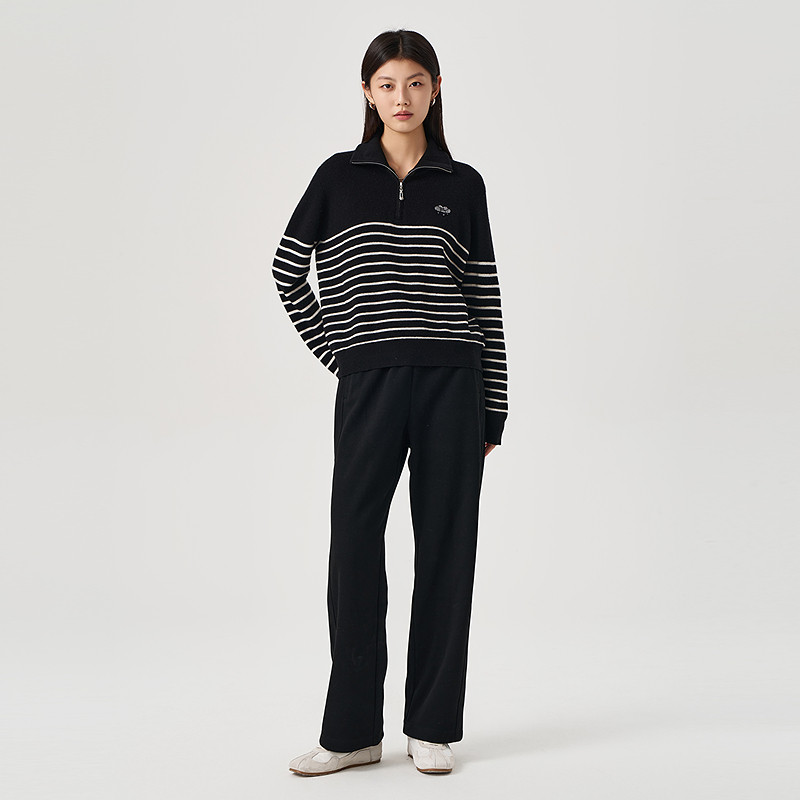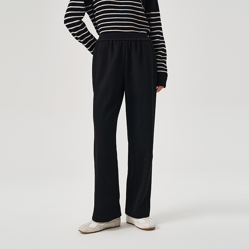 天猫OTT2025冬季新品黑色百搭显瘦针织直筒裤女松紧腰休闲长裤
