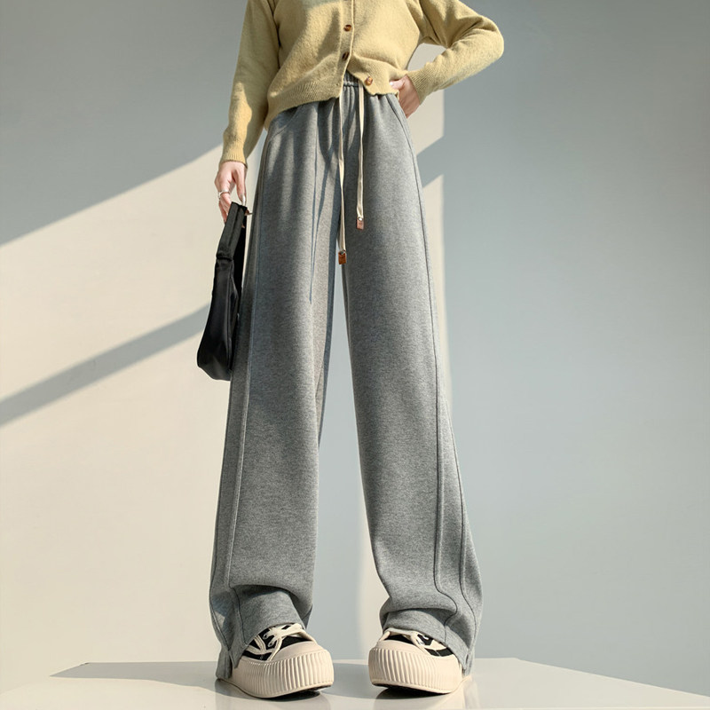 淘宝大码加绒侧开叉阔腿裤胖mm女2024秋冬新款高腰垂感加厚休闲运动裤