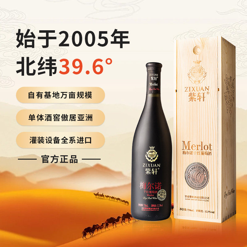 天猫紫轩精品梅尔诺干红葡萄酒宴会酒750ml整箱装晚安红酒送礼礼盒装