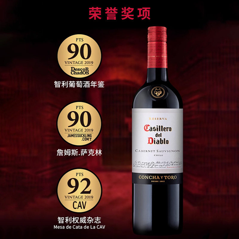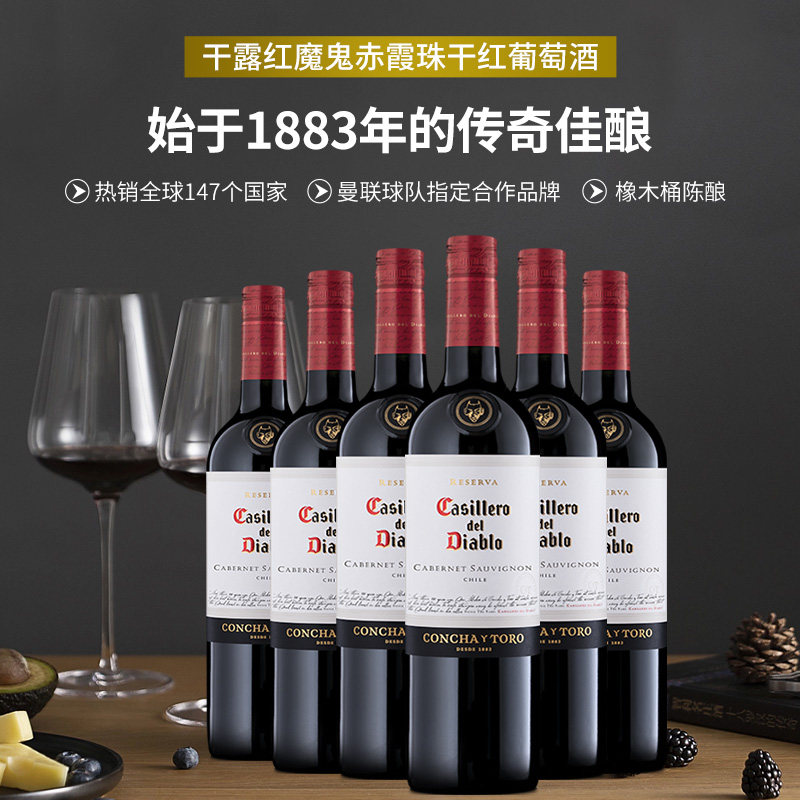 天猫干露红魔鬼珍藏赤霞珠干红葡萄酒智利原瓶进口红酒整箱750ml*6支