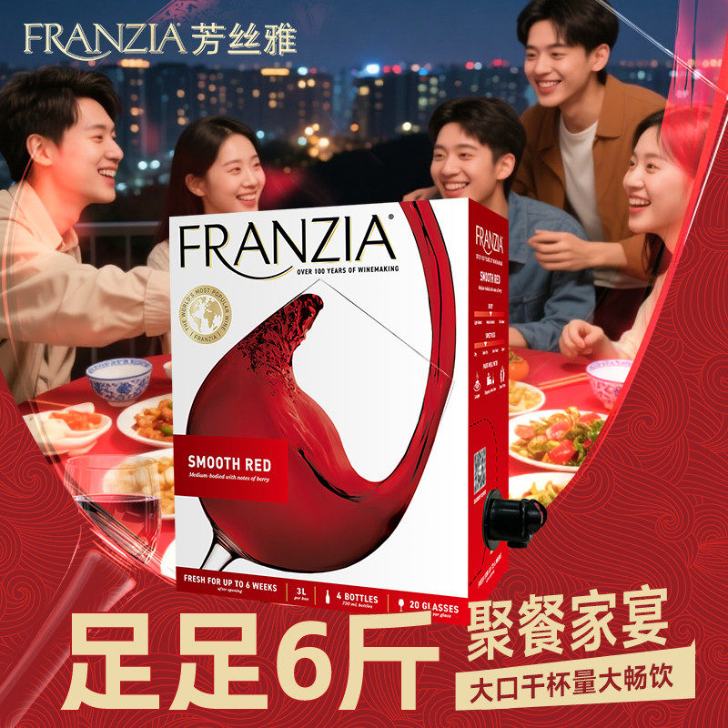 天猫FRANZIA芳丝雅红3L盒装半干型红葡萄酒 每日热红酒 聚餐送礼酒