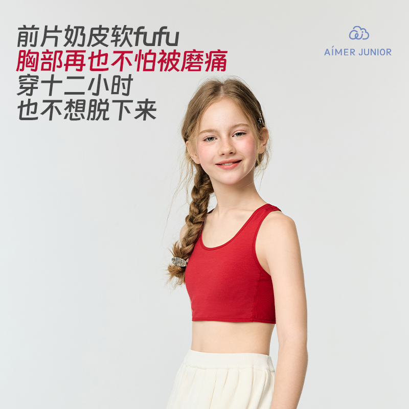天爱慕少女奶皮衣透气新年红3A抗菌发育内衣女孩生肖马文胸A类背心