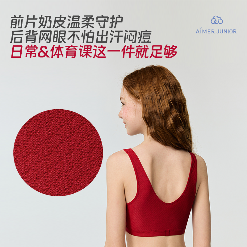 爱慕少女发育内衣新年红色小奶皮背心三阶段少女运动文胸生肖马年
