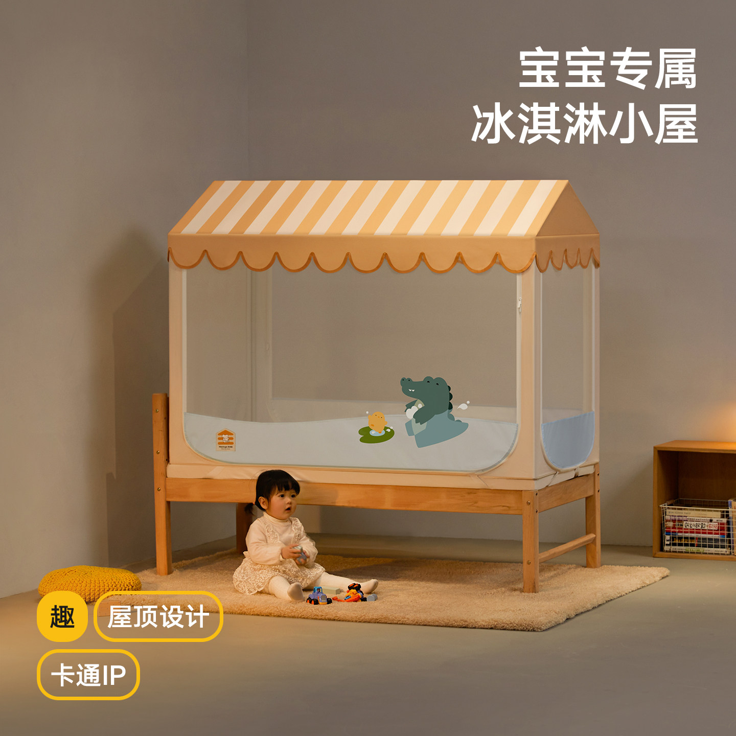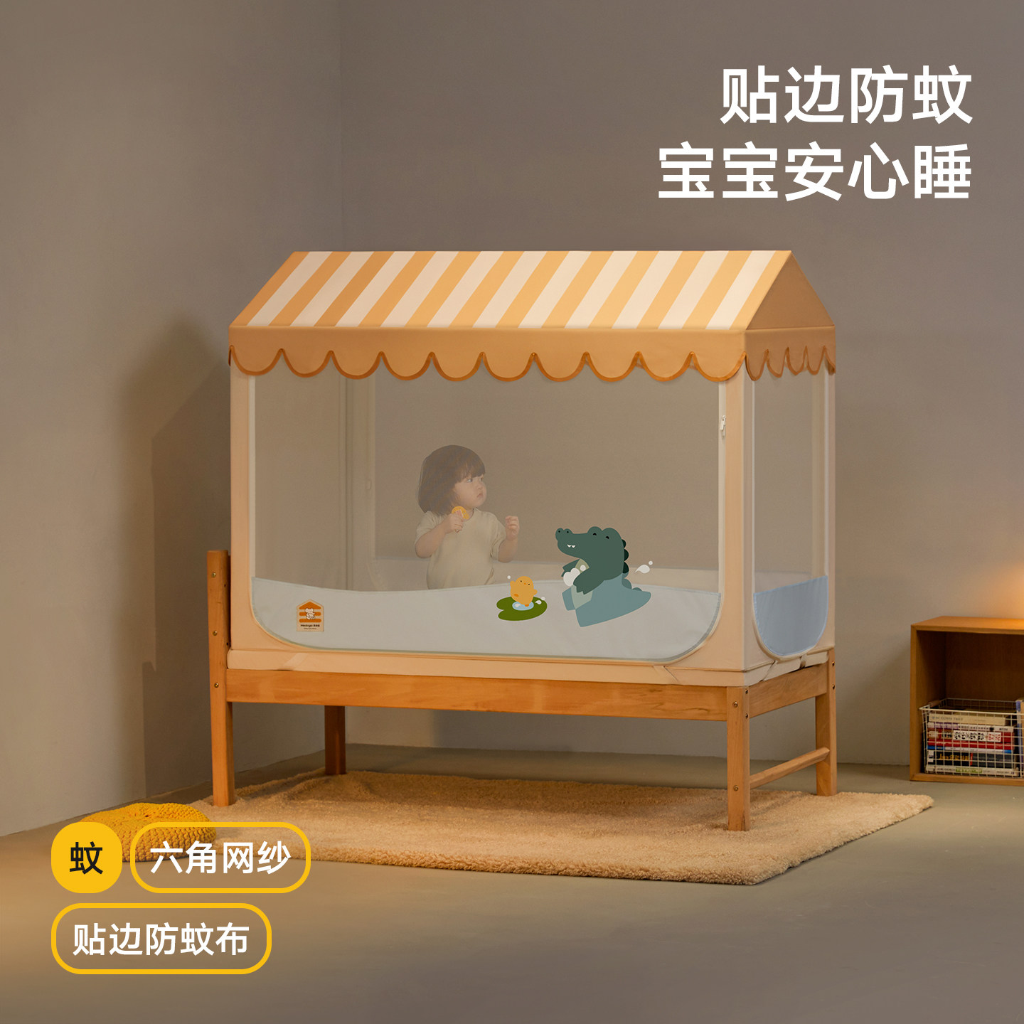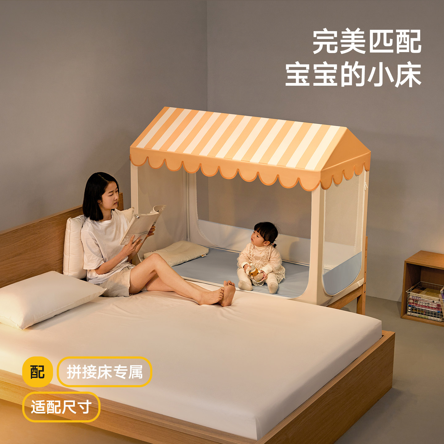 天猫美朵嘉2025新款婴儿床拼接床蚊帐屋顶款全底床单儿童遮光床上帐篷