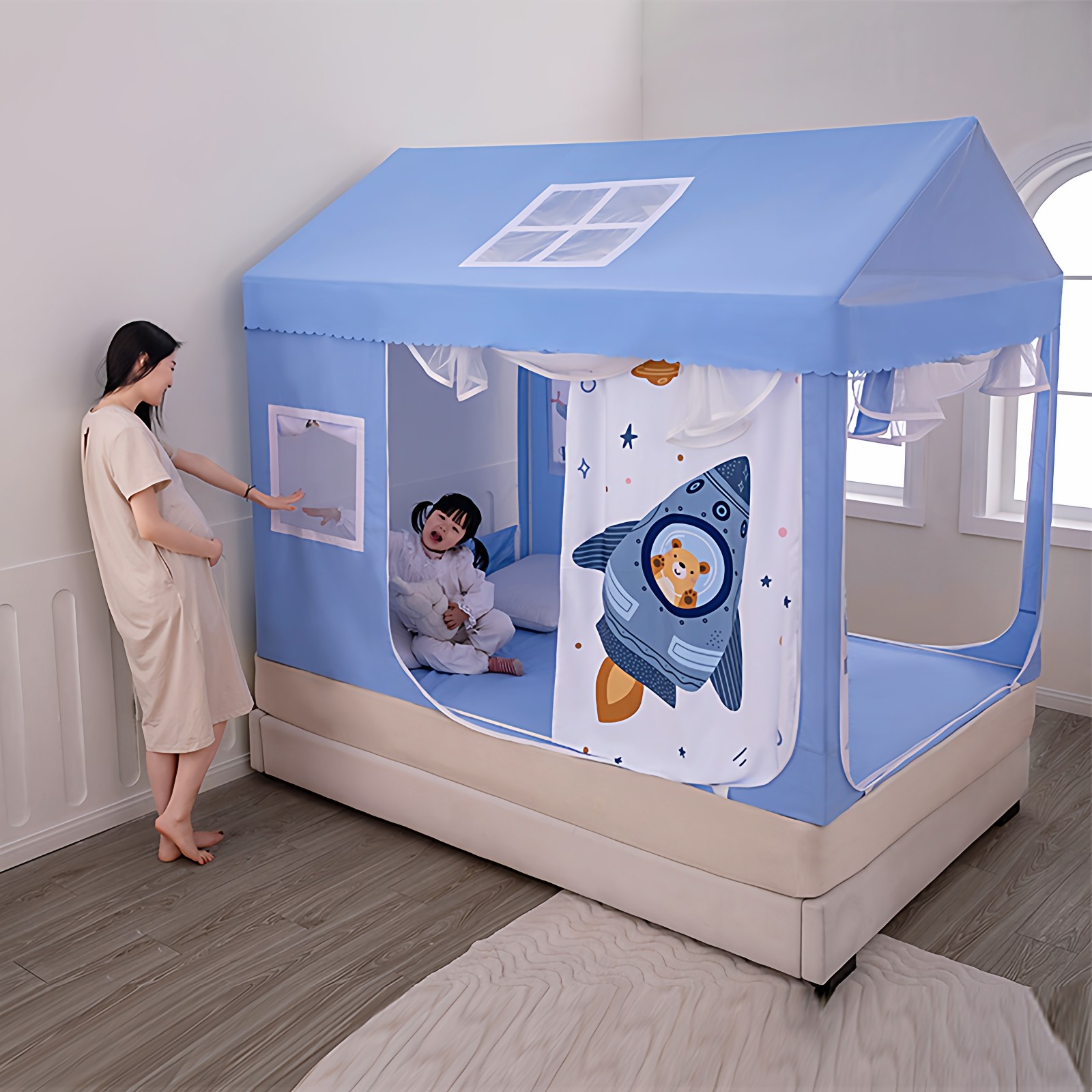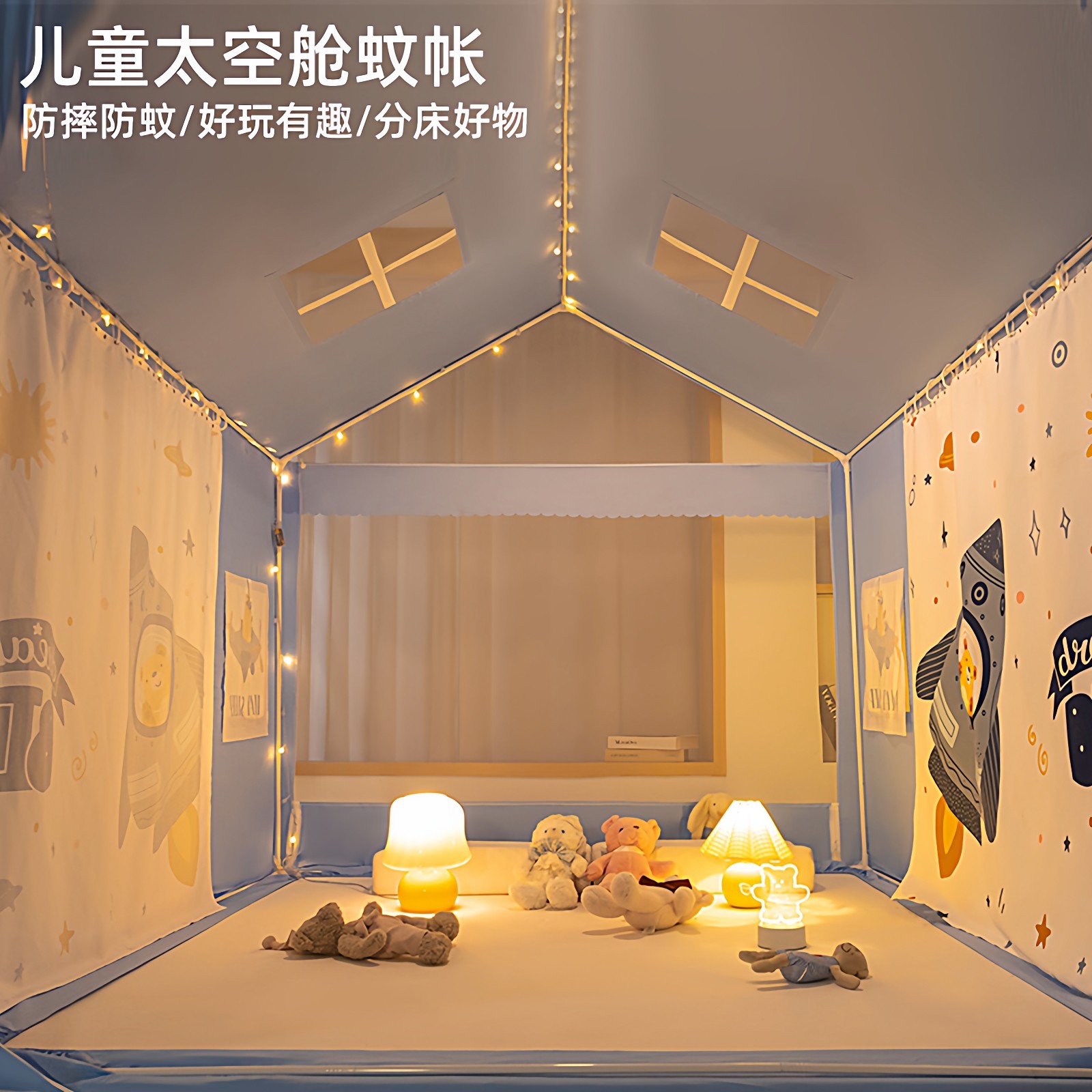 天美朵嘉儿童防摔蚊帐家用2025新款卧室婴儿防蚊家用围栏床单一体式