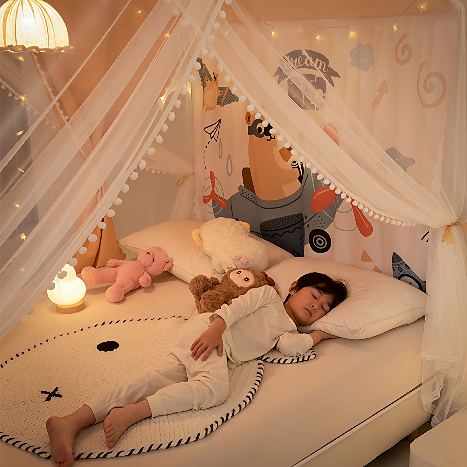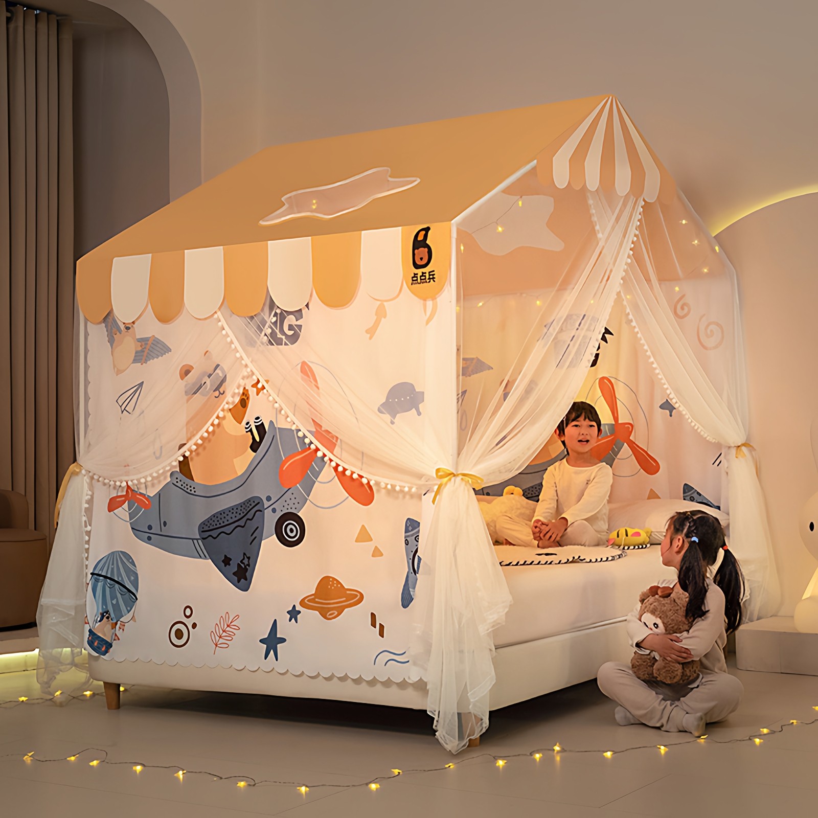 天美朵嘉儿童防摔蚊帐家用2025新款卧室婴儿防蚊家用围栏床单一体式