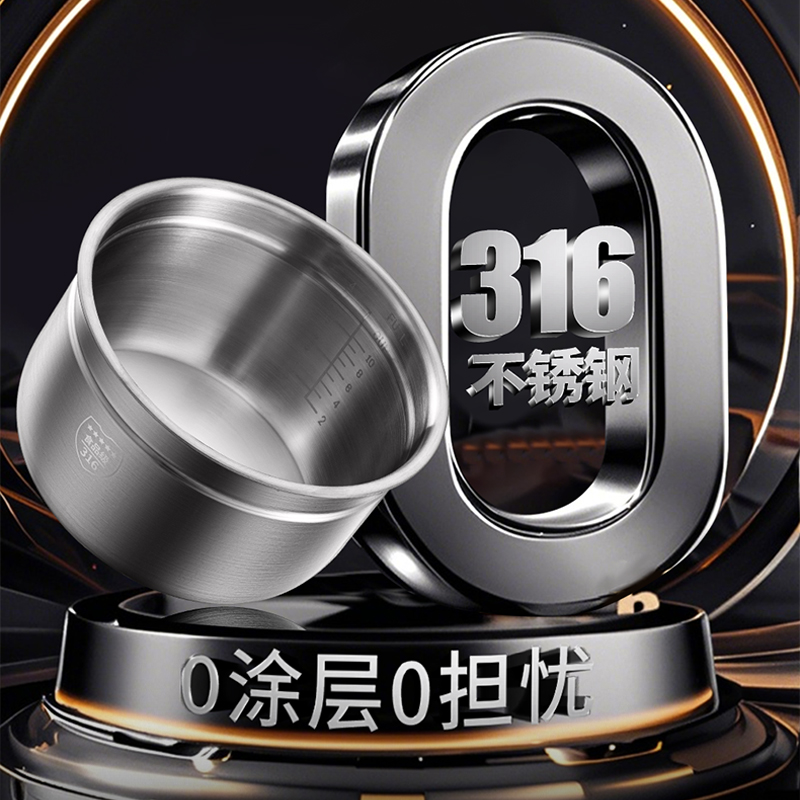 天苏泊尔电压力锅家用0涂层钢胆6L大容量球釜高压锅不锈钢双胆饭煲