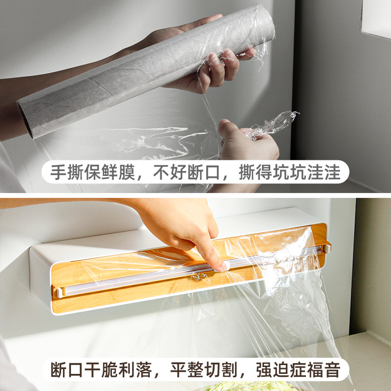 天猫御仕家磁吸保鲜膜切割器厨房冰箱壁挂式三合一滑刀锡纸切割收纳盒