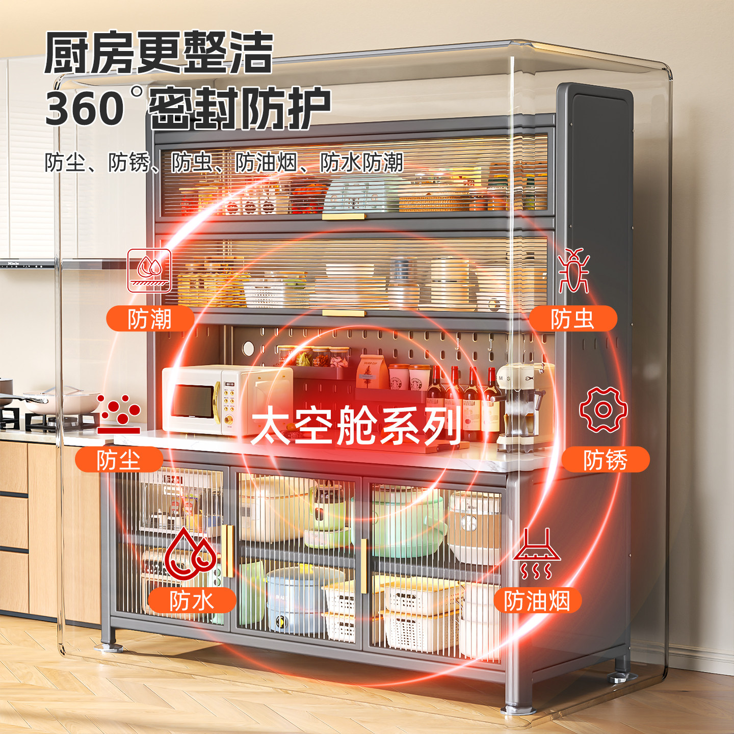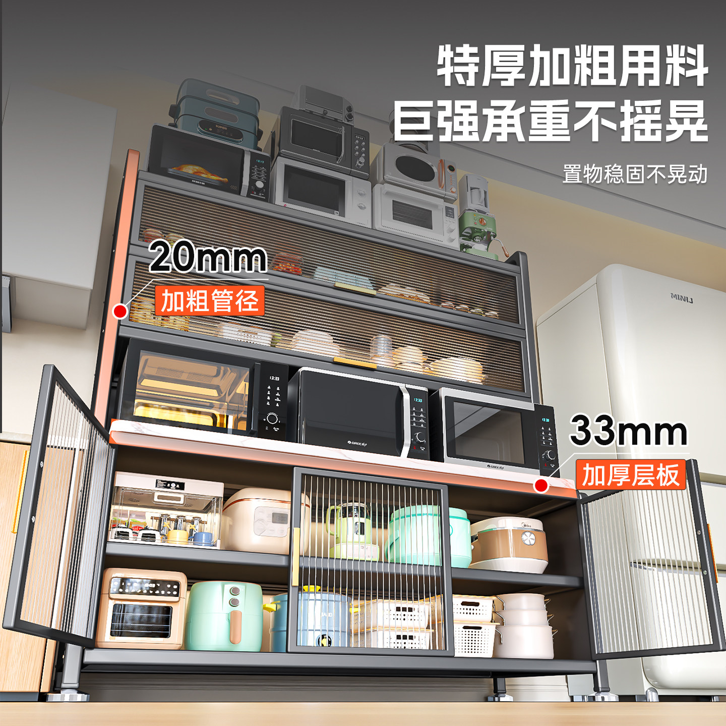 天猫厨房落地置物架家用靠墙多功能厨房餐边置物架冰箱侧面碳钢餐边柜