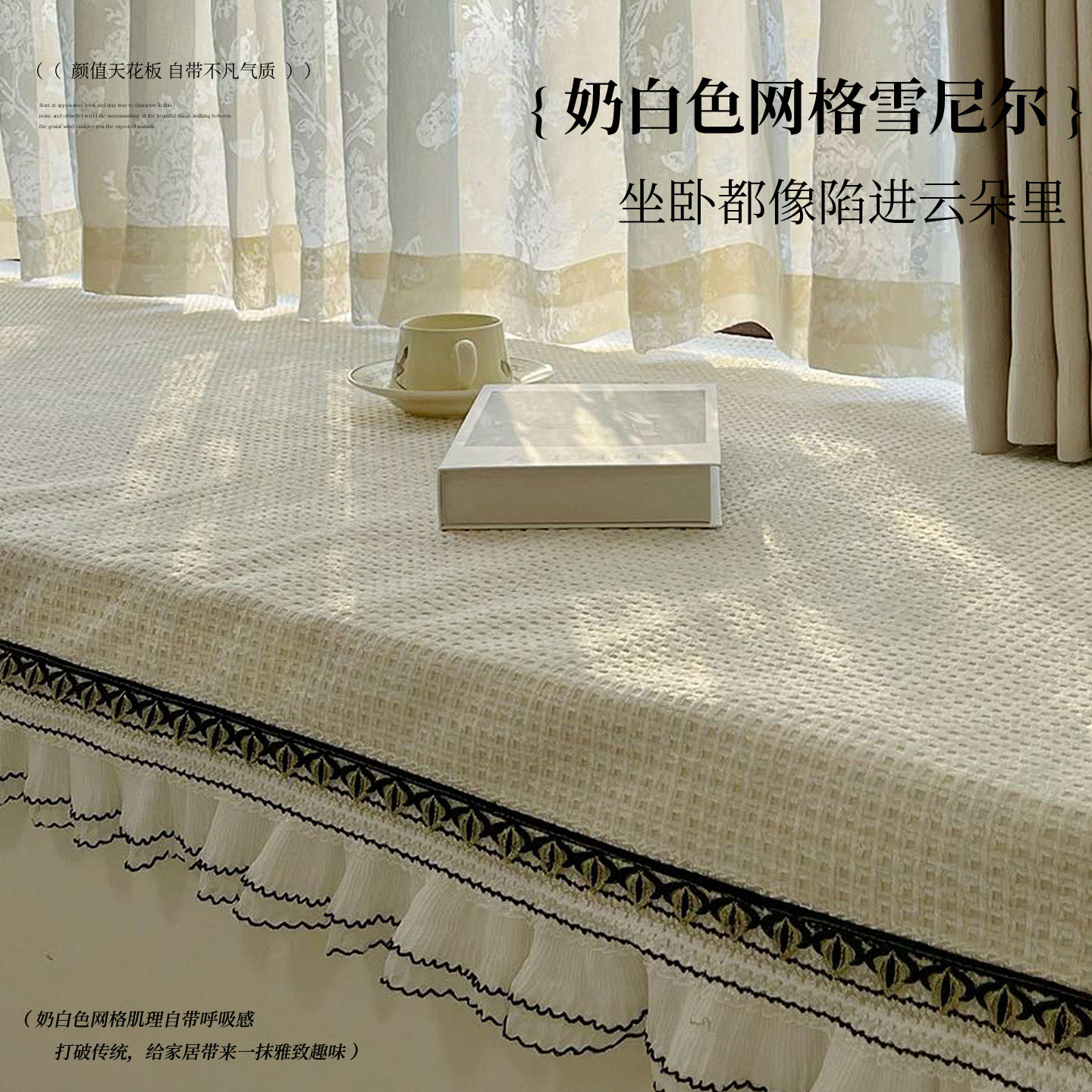 天猫法式奶油风飘窗垫新款窗台垫子四季通用防滑阳台盖布飘窗改造神器