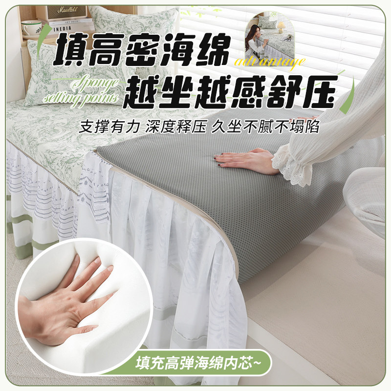 2025年新款裙摆飘窗垫,专为提升居家格调而设计,堪称窗台改造神器。采用轻奢高级感面料,触感柔软,垂坠感十足的“裙摆”式设计,自然包裹窗台边缘,美观又实用。四季通用材质,冬暖夏凉,透气亲肤,久坐不闷热。支持定制尺寸,完美契合各类飘窗、阳台或榻榻米空间。无论是阅读、小憩还是拍照打卡,都能营造温馨雅致的氛围。简约而不失设计感的配色,轻松融入现代、北欧、轻奢等多种家居风格,让每一寸空间都散发高级质感,是提升生活品质的必备软装单品。