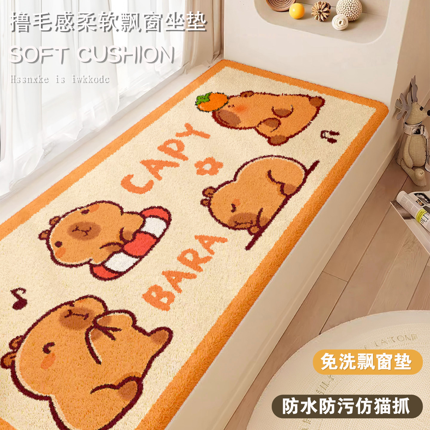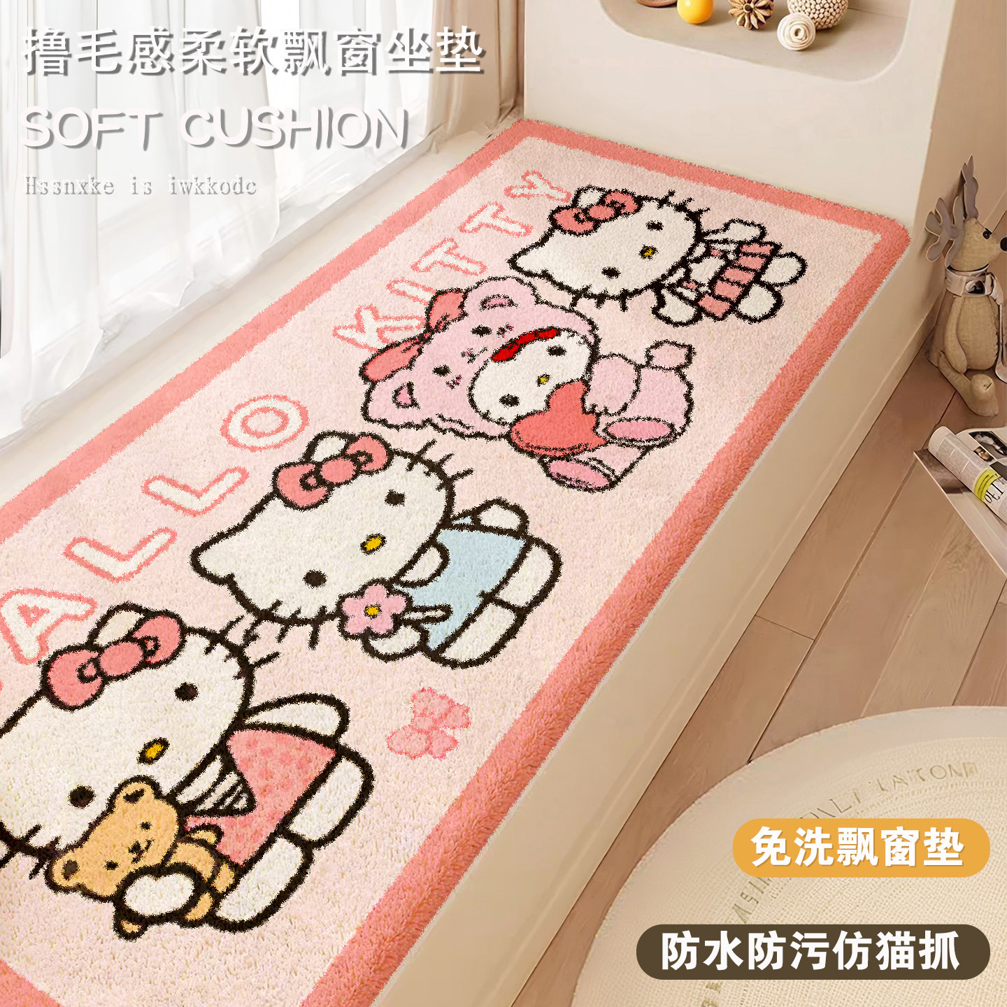 天猫新款卡通飘窗垫冬季保暖阳台长条毛绒坐垫床边柔软加厚脚垫地毯