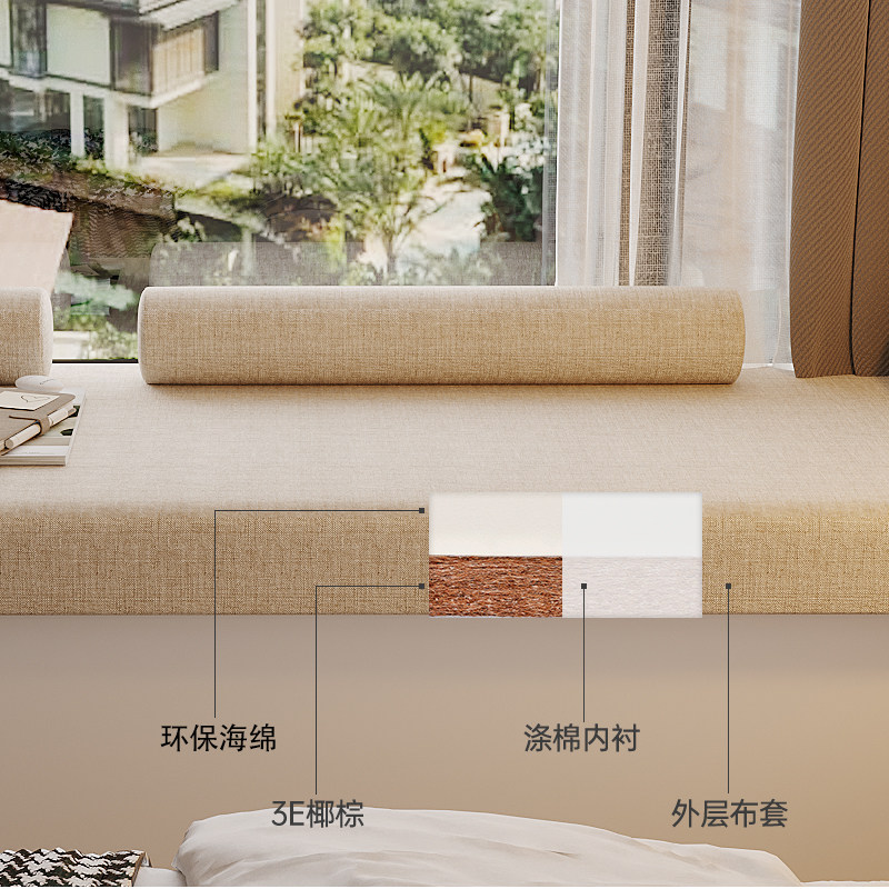 淘奶油风乳胶椰棕飘窗垫窗台垫2023新款阳台垫子四季通用定制可拆洗