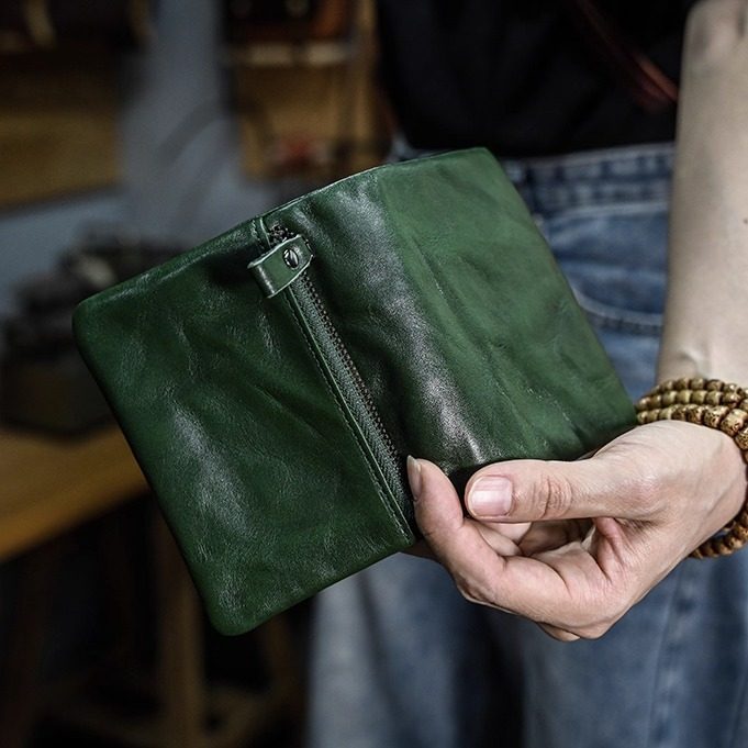 淘AtelierLeo头层牛皮钱包男真皮短款手工多卡位消磁防盗刷卡包钱夹
