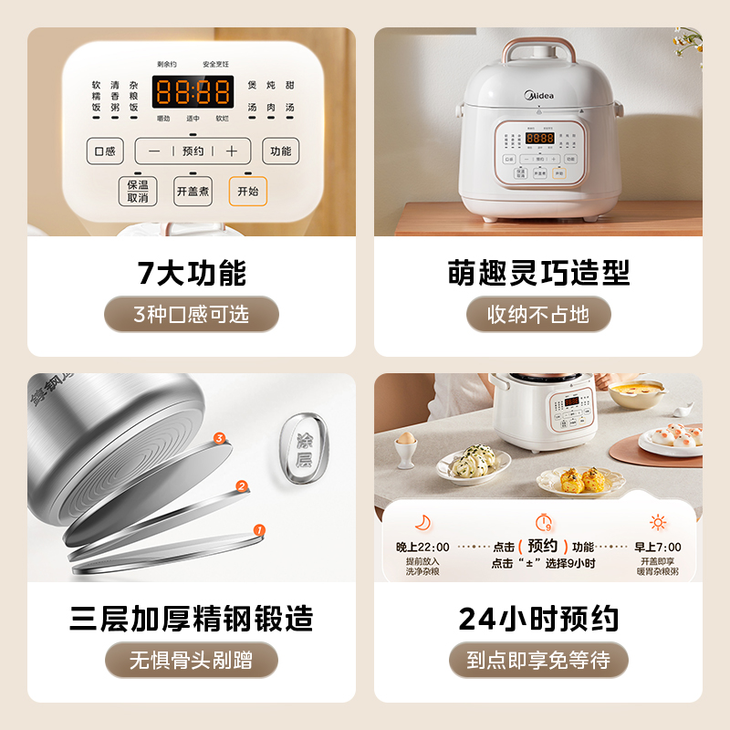 美的电压力锅迷你家用小型3-4人4L升高压饭煲一体全自动智能正品