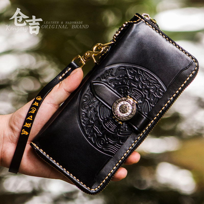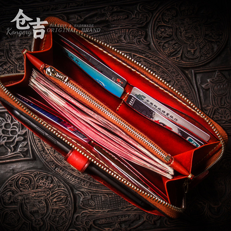 淘宝仓吉经典!必买九宫钱包!仓吉手工牛皮手机包男女真皮拉链手拿包