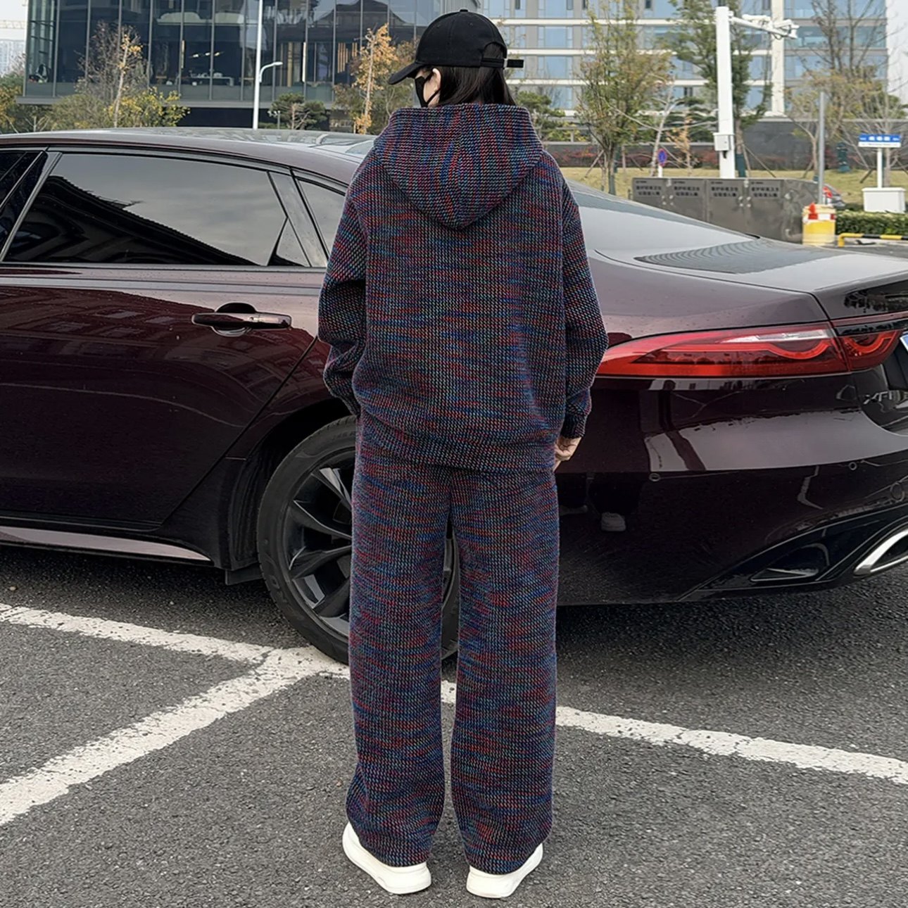 【陈伟霆同款】CANOTWAIT老钱风华夫格卫衣休闲运动套装男