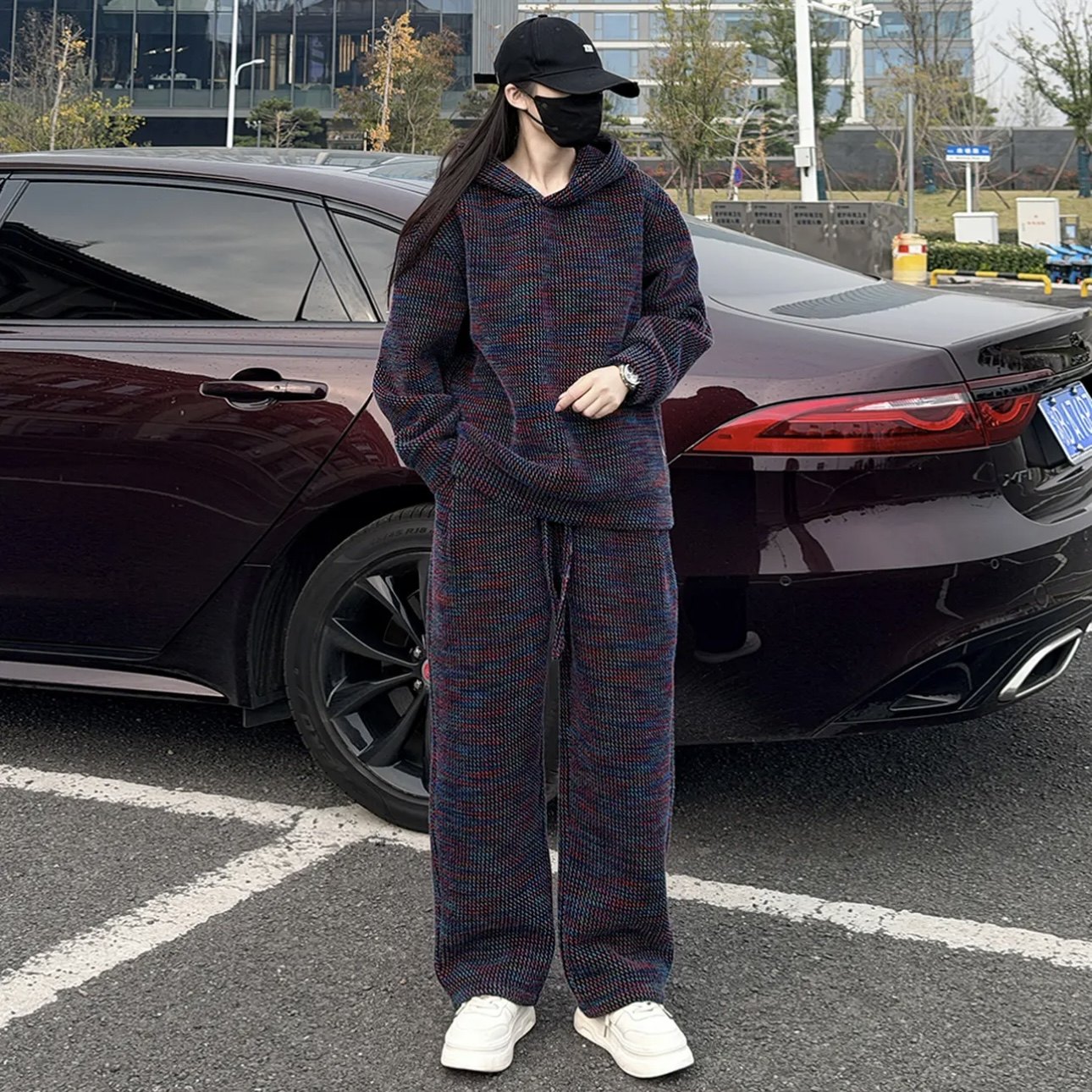 淘宝秋冬季潮牌连帽休闲运动套装男女同款加绒加厚百搭卫衣长裤两件套