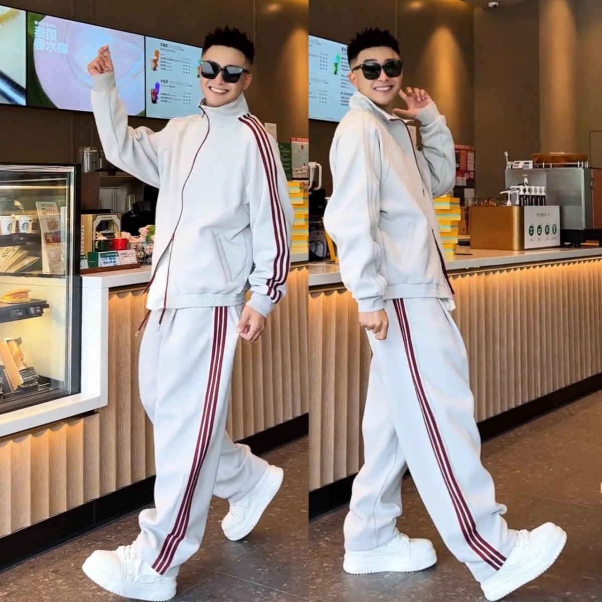 淘宝秋季美式潮牌撞色三条杠休闲运动套装情侣同款立领卫衣卫裤两件套