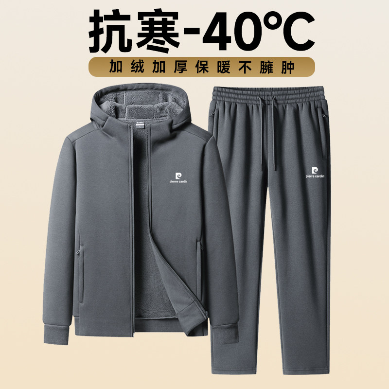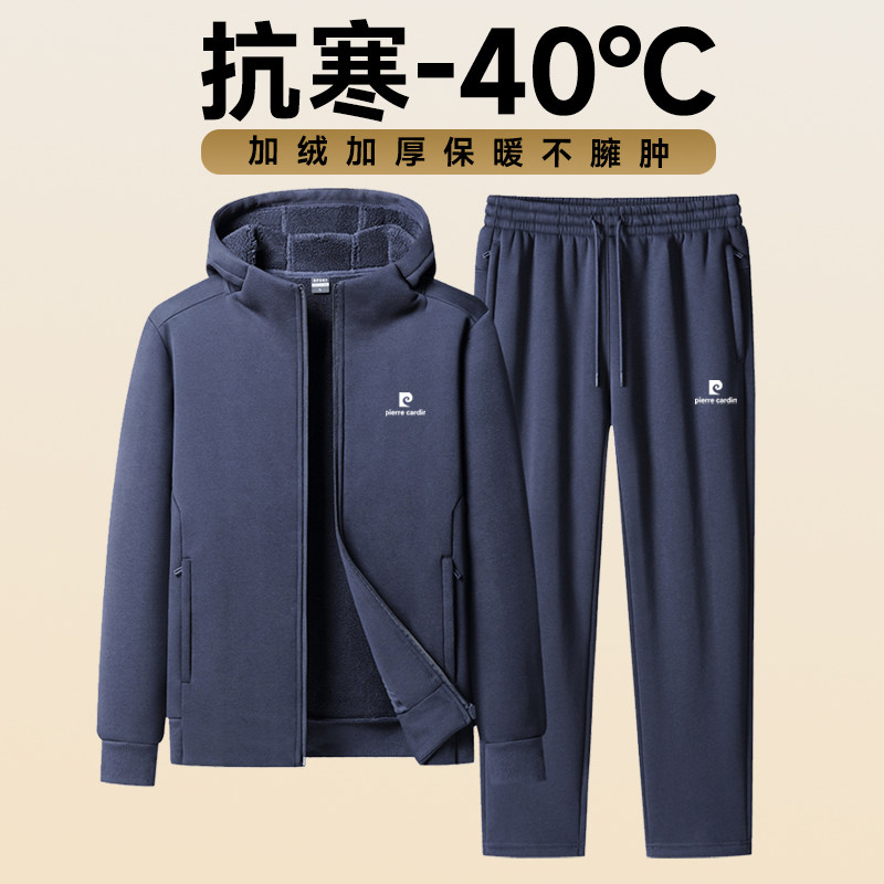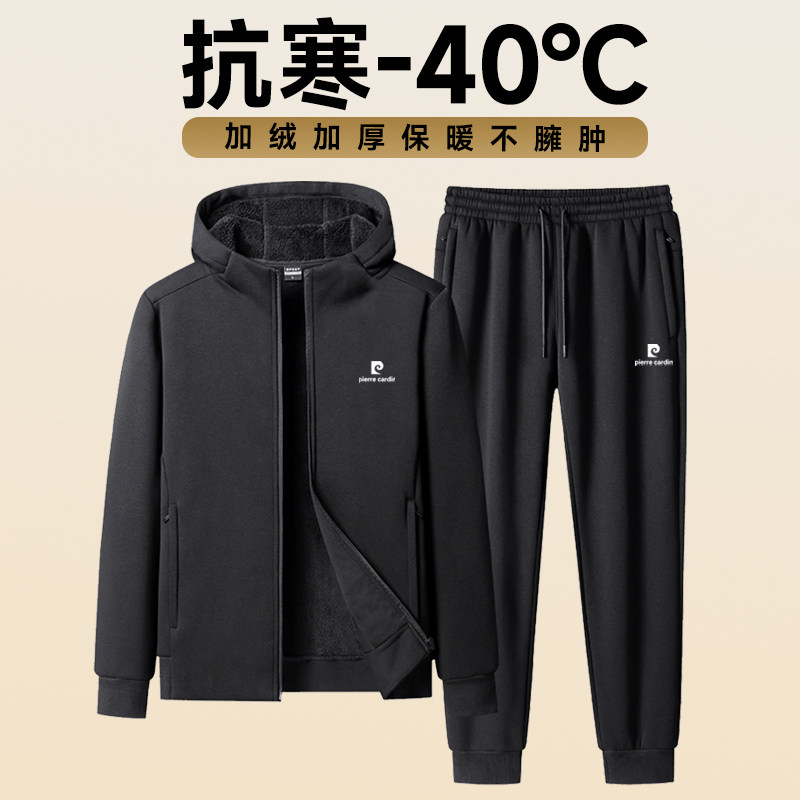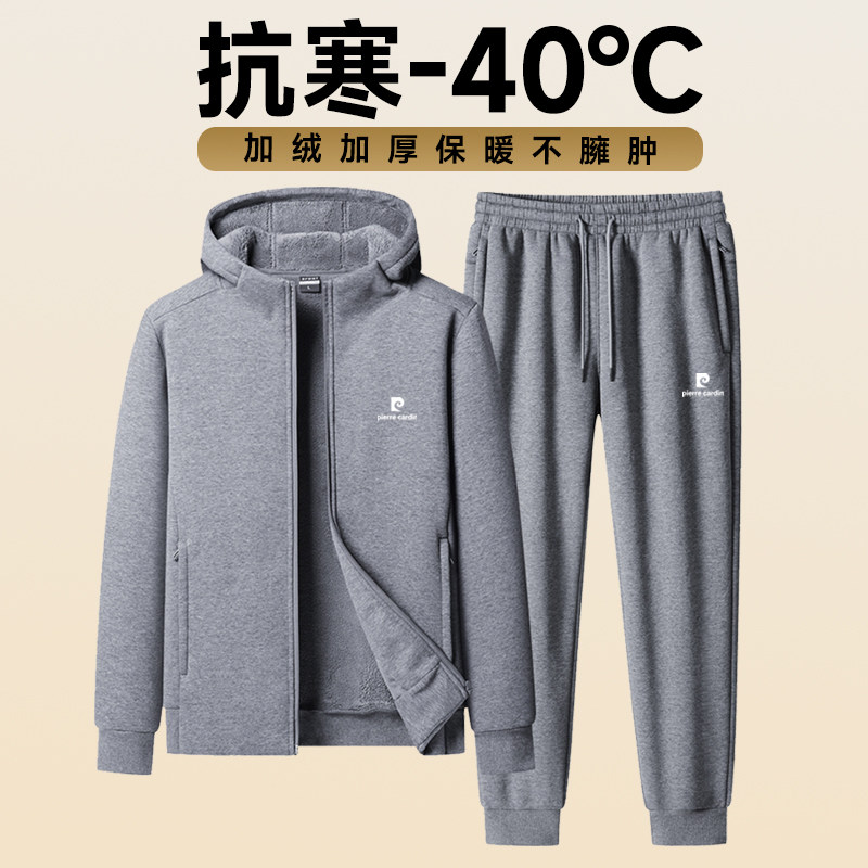 淘宝皮尔卡丹羊羔绒连帽卫衣套装男加绒加厚保暖高端休闲运动套装男