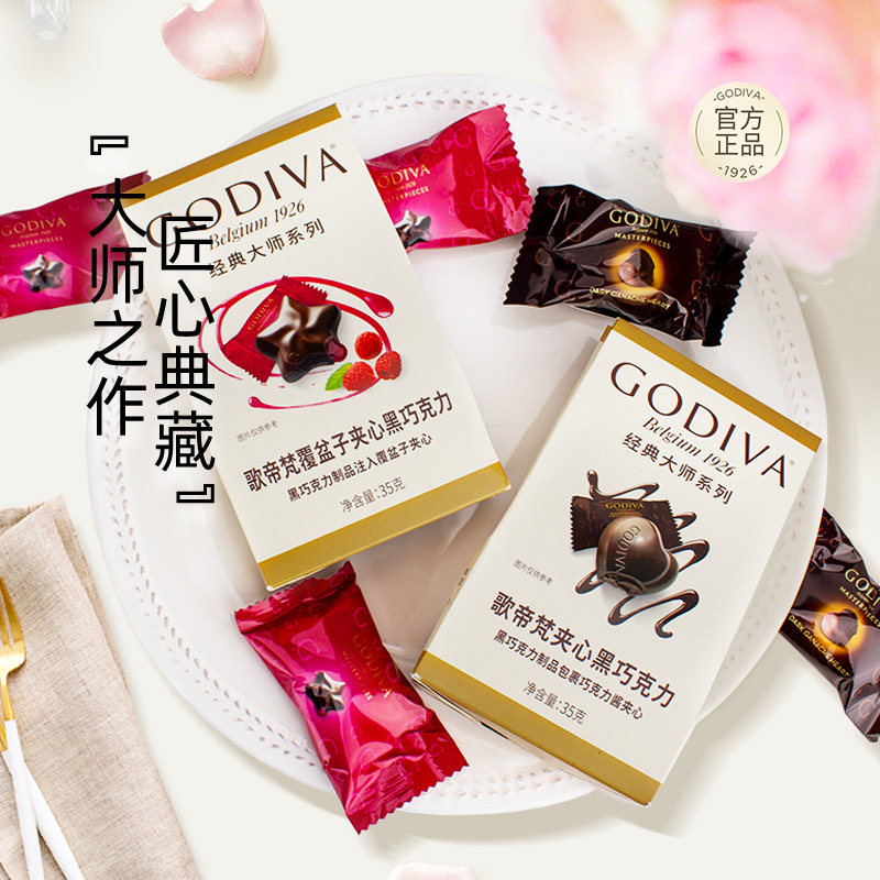 天猫【自营】GODIVA歌帝梵经典大师黑巧覆盆子35g夹心巧克力5颗装*4袋