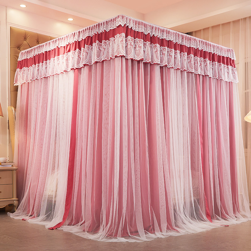 红豆冬季保暖蚊帐家用卧室加厚床上帐篷挡风加绒儿童防摔蚊帐床帘