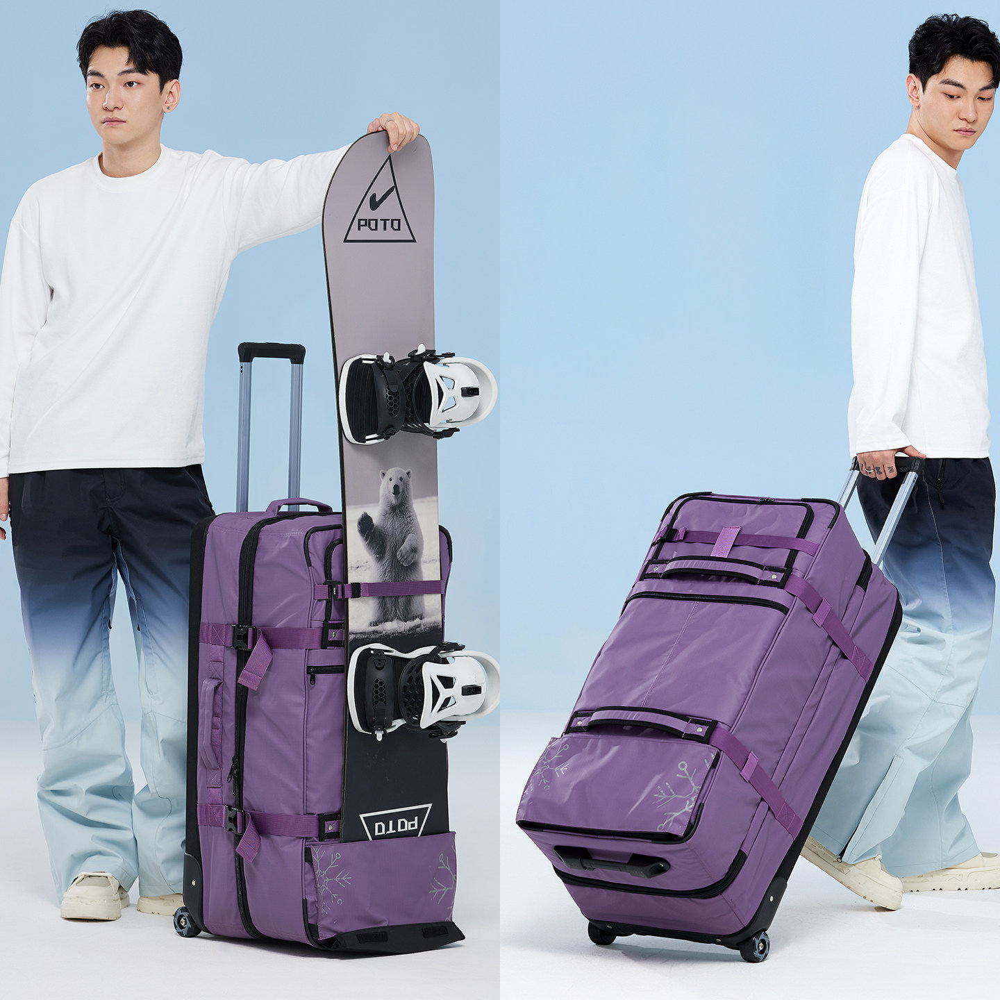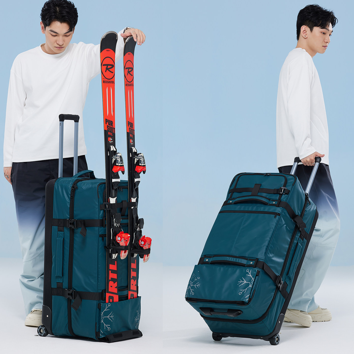 XXXsnow单板装备箱是一款专为滑雪爱好者设计的多功能拉杆行李箱,兼具实用性与耐用性。箱体采用高强度防刮材质,有效保护内部装备,适合托运及日常使用。配备顺滑静音万向轮与可调节伸缩拉杆,拖行轻松省力。内部设有独立分隔层,可稳固收纳单板或双板、雪鞋、头盔及服装等全套装备,顶部还设有专用雪板插袋,取放便捷。拉链加固设计提升安全性,防水内衬应对雪水渗透。无论是前往雪场还是长途旅行,XXXsnow装备箱都能为您的滑雪之旅提供贴心保障,是滑雪出行的理想伴侣。