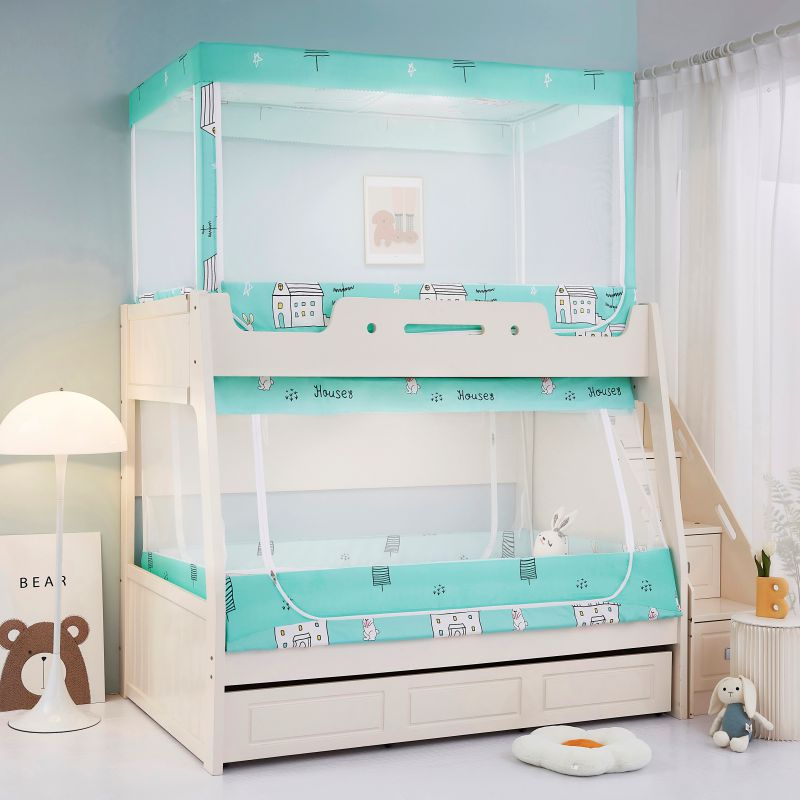 富俪姿子母床帘蚊帐,一体化设计,集床帘、蚊帐与书架于一体。采用上下铺遮光材质,有效阻挡强光,营造舒适睡眠环境。独特梯形设计,适应多种床铺尺寸,广泛适用于学生宿舍。同时,该床帘配备双层结构,既可单独使用,也可组合成双层床,实用又灵活多变。不仅有舒适的触感和优越的遮光效果,更展现出时尚的外观。适合儿童房或学生宿舍使用,给您带来便捷的居家体验。