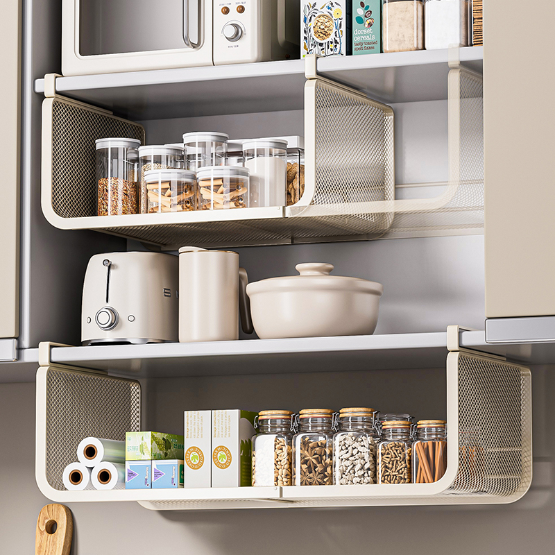 天猫厨房置物架橱柜下挂架吊柜内分层伸缩挂篮悬挂拉篮柜子保鲜膜收纳