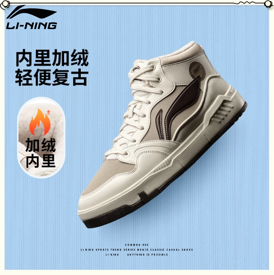 淘宝李宁男子经典休闲鞋25冬季学生青少年加绒保暖时尚百搭潮流运动鞋