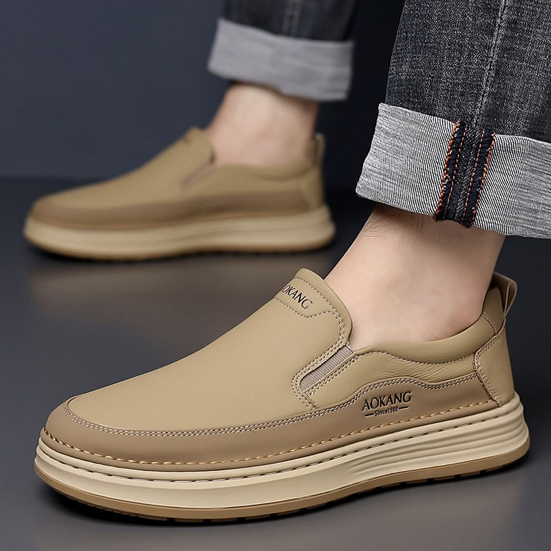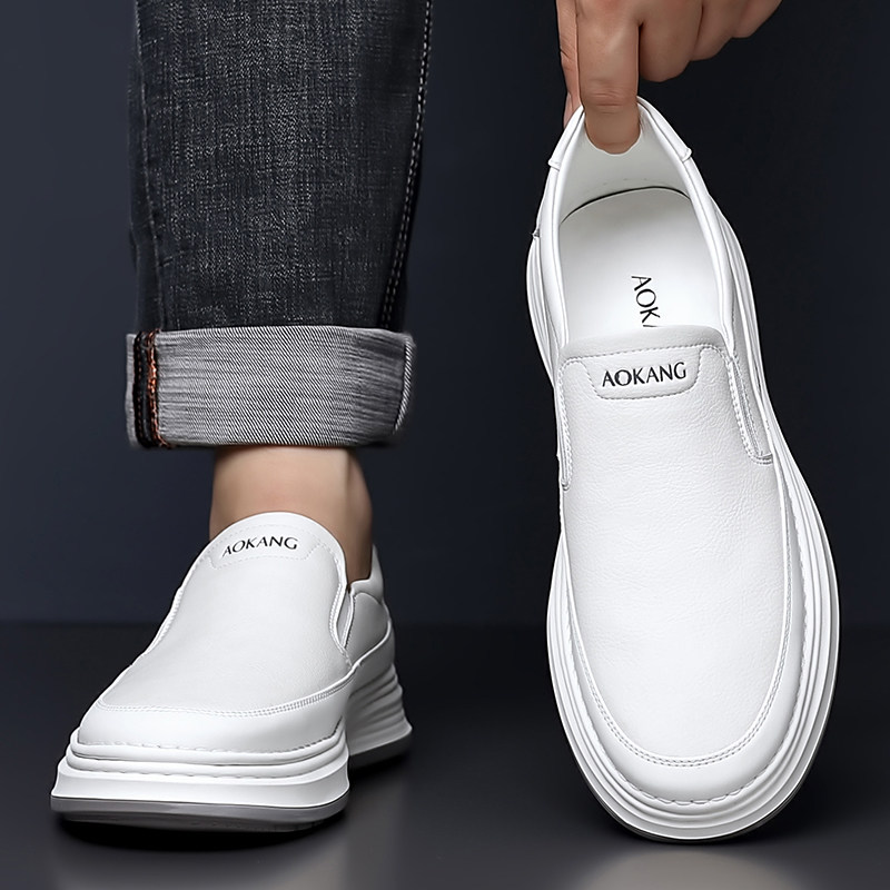 天猫奥康 男鞋2025秋季男士真皮透气百搭小白鞋一脚蹬休闲皮鞋板鞋子H